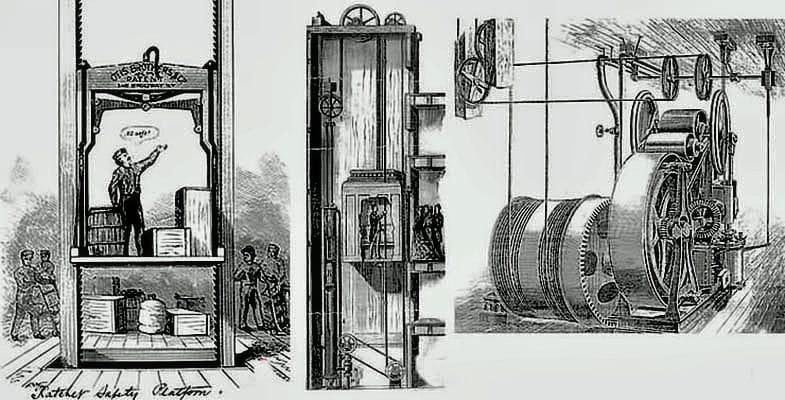First Elevator Installed, 1857 – Elisha Otis installs his first safety elevator at 488 Broadway, New York City, pioneering vertical transportation and building design.