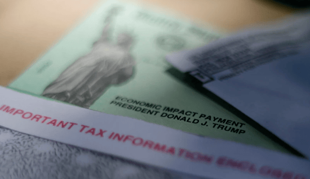 President Donald J. Trump’s name is printed on a stimulus check issued by the IRS to help combat the adverse economic effects of the new coronavirus outbreak in San Antonio, April 23, 2020. (AP Photo/Eric Gay, File)