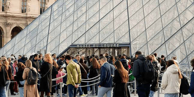 Visitors queued up outside the world's most-visited museum early on Wednesday