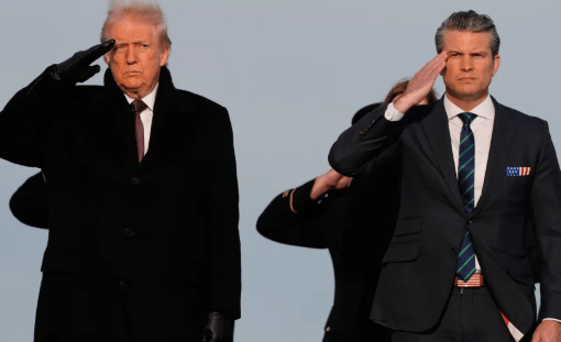 President Donald Trump and Defense Secretary Pete Hegseth (Julia Demaree Nikhinson/AP)