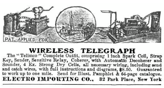 Electro Importing Co.’s ad for the "Telimco" wireless telegraph, published in the Scientific American